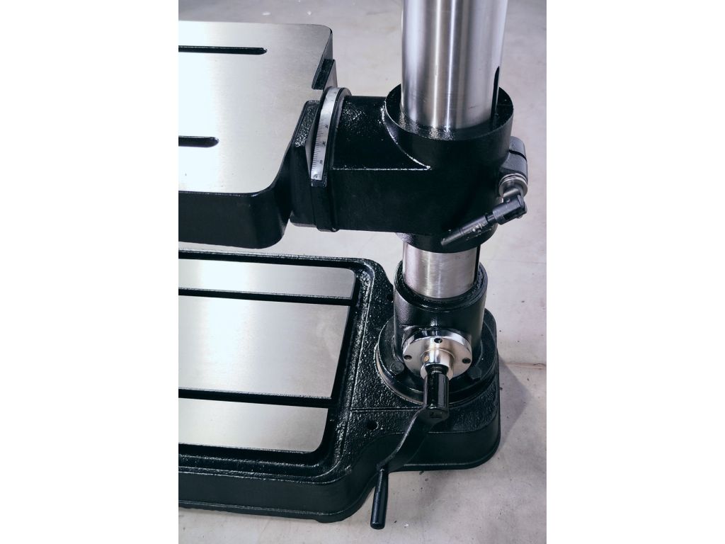 Асинхронний двигун з реверсом потужністю 1,1 кВт забезпечує швидкість обертання шпинделя у діапазоні 200-2400 об/хв з плавним 5-ступеневим регулюванням. Хід шпинделя 135 мм дозволяє свердлити глибші отвори. Робочий стіл можна регулювати по висоті та куту нахилу, а при його демонтажі в якості опори використовувати основу. Стіл і основа мають Т-подібні пази. MAST Metalltechnik M-HSV25S 400V та інші верстати для свердління металу в наявності на KMA.UA.