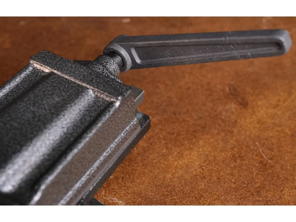 Губки із загартованої сталі мають високу зносостійкість, витримують сильний затиск без деформацій і не стираються навіть при інтенсивному використанні. Корпус виготовлений з литого чавуну, що забезпечує стабільність і довговічність лещат. Знімна ручка забезпечує зручне транспортування і зберігання. Компактна конструкція вагою всього 8,5 кг легко і швидко монтується на робочу поверхню, що робить ці лещата 100 мм ідеальним варіантом для майстерень з невеликою робочою площею.