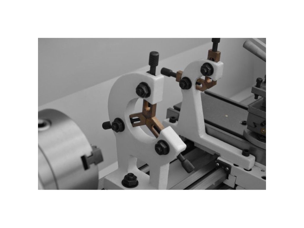 Токарний верстат має поздовжню подачу, потужний двигун 1,1 кВт, два люнети - нерухомий і рухомий, 3-х кулачковий токарний патрон, що самоцентрується, на 125 мм.