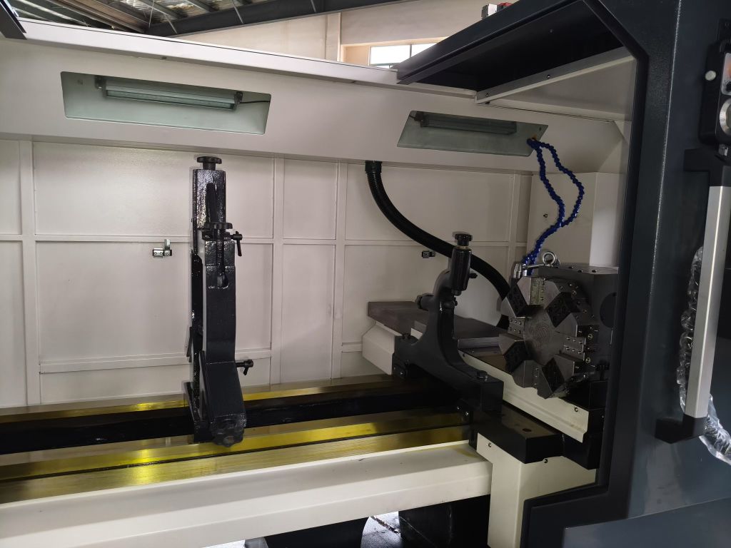 Потужність основного двигуна становить 11 кВт, отвір шпинделя - 105 мм. 8-позиційний револьвер під різці 25х25 мм, вилита єдиним моноблоком станина з чавуну марки аналогу СЧ25, супорт і задня бабка з чавуну СЧ20 забезпечують точне виконання важких завдань і збереження стабільності при інтенсивних навантаженнях. Для зменшення теплового навантаження на електричні компоненти верстат оснащений системою охолодження щита електроніки. Завдяки високій продуктивності, безвідмовності та надійності, цей токарний ЧПК верстат по металу відмінно підходить для серійних виробництв, де є потреба у точній обробці великих партій матеріалу.