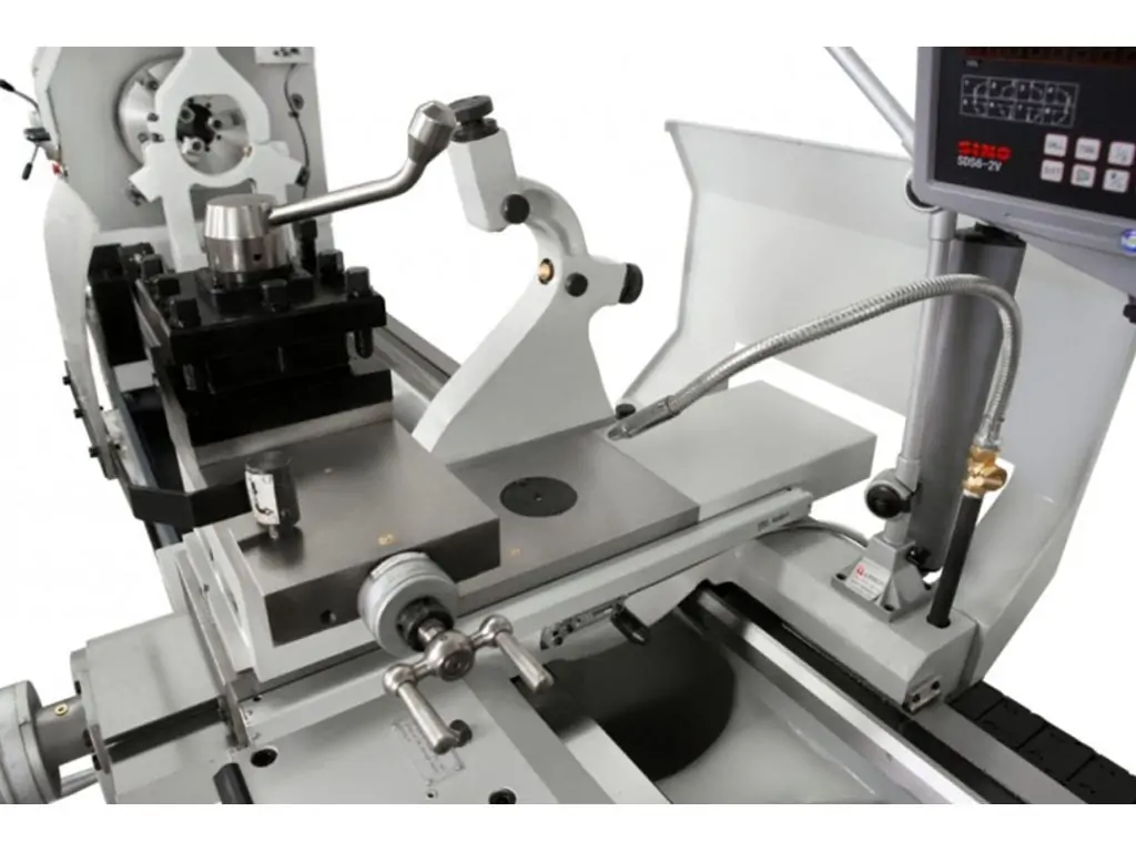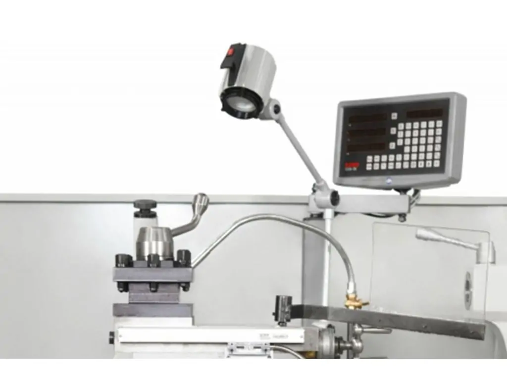 Через велику довжину ходів супорта та поперечних переміщень ручні лімби стають незручними. Цифрова індикація показує реальні переміщення з точністю до 0,01 мм, що економить час, зменшує брак і підвищує зручність роботи.