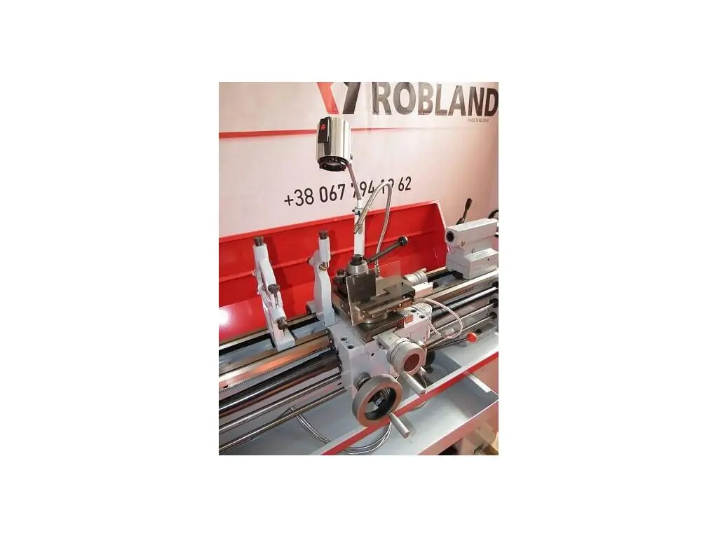 Комплект поставки: 3-кулачковий патрон _ 200 мм, включаючи змінні кулачки, 4-кулачкова планшайба _ 200 мм із зворотними кулачками, затискна шайба _ 250 мм, 2 нерухомих наполегливих центру КМ4, перехідна втулка КМ 6/4, нерухомий люнет, рухливий люнет, галогенна лампа робочого освітлення, перегородка для захисту від стружки, вузол охолодження, опорна рама з ножним гальмом, резьбоуказатель,1 комплект змінних коліс, інструмент для технічного обслуговування