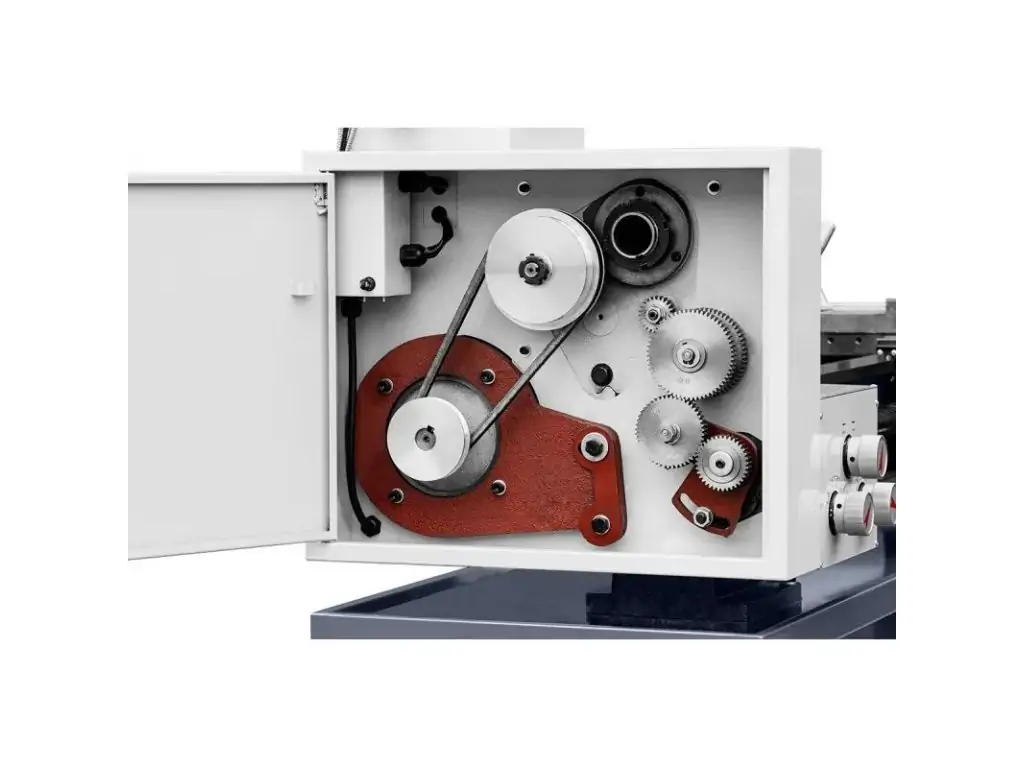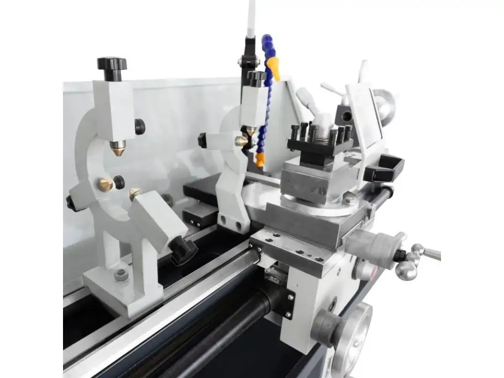 Перевагами представленої моделі є автоматичні поздовжня і поперечна подачі, просте регулювання швидкості шпинделя у діапазоні 25-1600 об/хв, поворот інструментальної каретки на ± 45° і механізм ковзання задньої бабки на ± 10 мм для обробки конусів. Завдяки масивній, стійкій станині з індукційно загартованою і точно відшліфованою напрямною, цей токарний верстат по металу працює практично без вібрацій і гарантує високоякісний результат.