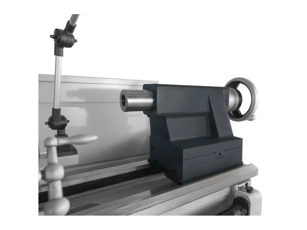 Трифазний асинхронний двигун потужністю 5,5 кВт і 12-ступенева механічна коробка передач із загартованими та прецизійно відшліфованими шестернями забезпечують ефективне різання твердих металів і великих діаметрів. Жорсткий шпиндель на високоточних підшипниках з кріпленням D1-8 CAMLOCK і конусом МК7 забезпечує надійну фіксацію оснастки і стабільність при важких режимах. Універсальна механічна коробка подач з ходовим гвинтом, системою важелів і запобіжною муфтою забезпечує точний крок подач, повторюваність розмірів і дозволяє нарізати різьбу без частої зміни шестерень. Завдяки масивній чавунній станині шириною 300 мм та індукційно загартованим, відшліфованим напрямним цей токарний верстат для виробництва зберігає точність і геометрію протягом довгих років служби.