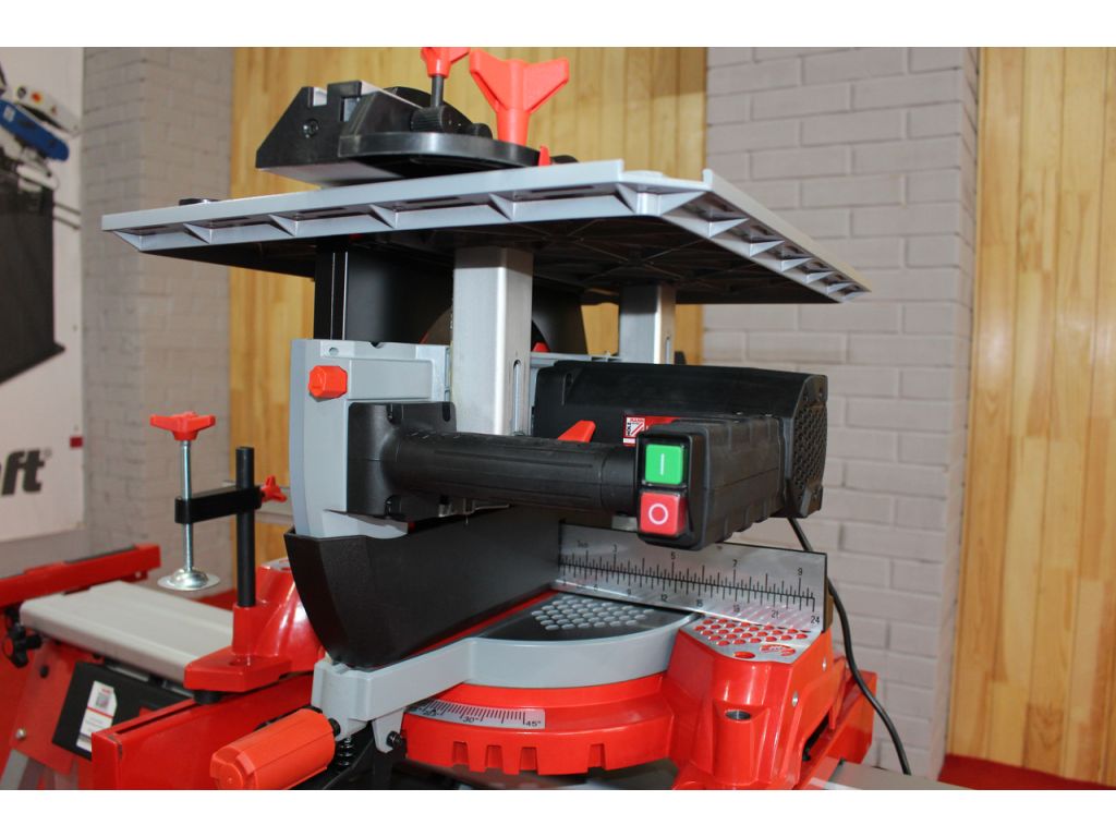 Пильний вузол має можливість нахилу під кутом до 45°, а робочий стіл має поворот на 45° в обидві сторони, що дозволяє здійснювати широкий спектр робіт. Стіл виготовлений з алюмінієвого сплаву, стійкий до навантажень. Для фіксації заготовки використовується струбцина із швидкозатискним механізмом. Для захисту від випадкового пуску верстат оснащений запобіжним реле. Якщо вам потрібна пила торцювання, замовляйте Holzmann TK 305 з гарантією на 24 місяці.