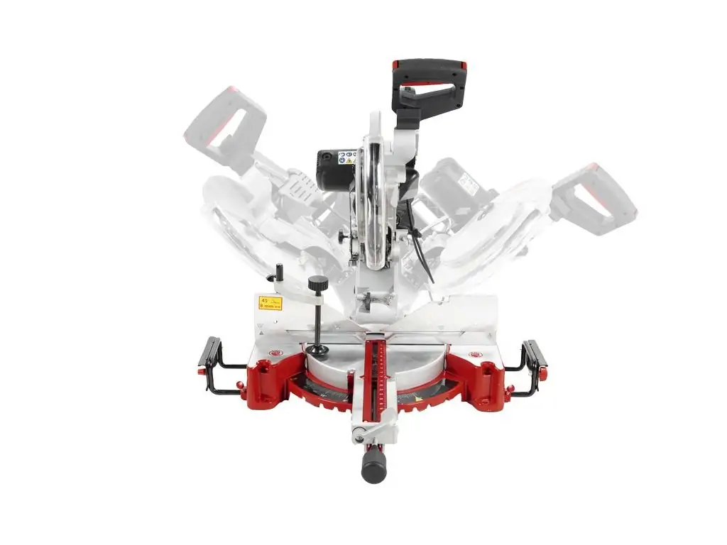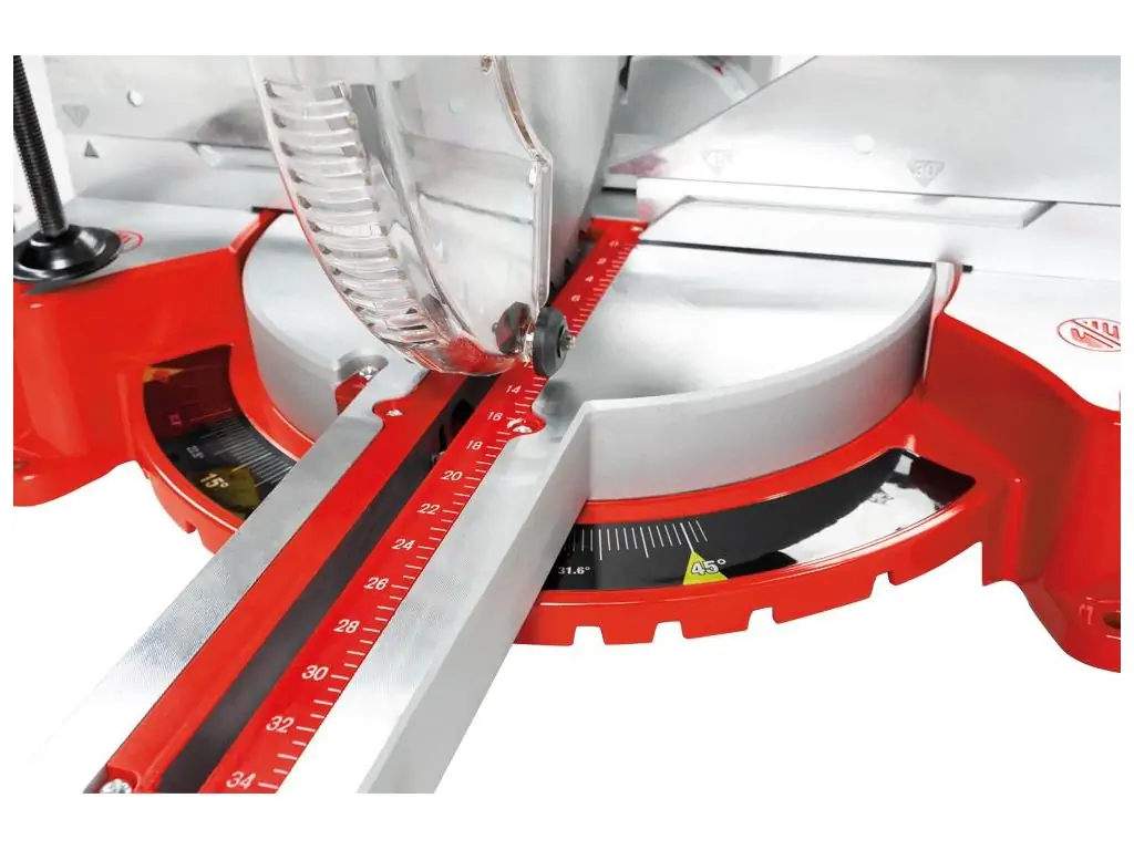Нахил пильного вузла на 45° і поворот робочого столу на 45° праворуч і ліворуч дають змогу якісно виконувати завдання різної складності. В стандартну комплектацію входить система протяжки, завдяки якій можна зручно працювати з широкими заготовками. Для максимальної точності позиціонування заготовки є лазерний покажчик лінії різу. Ця торцювальна пила з протяжкою буде вигідним придбанням як для самостійних майстрів, так і для деревообробних майстерень.