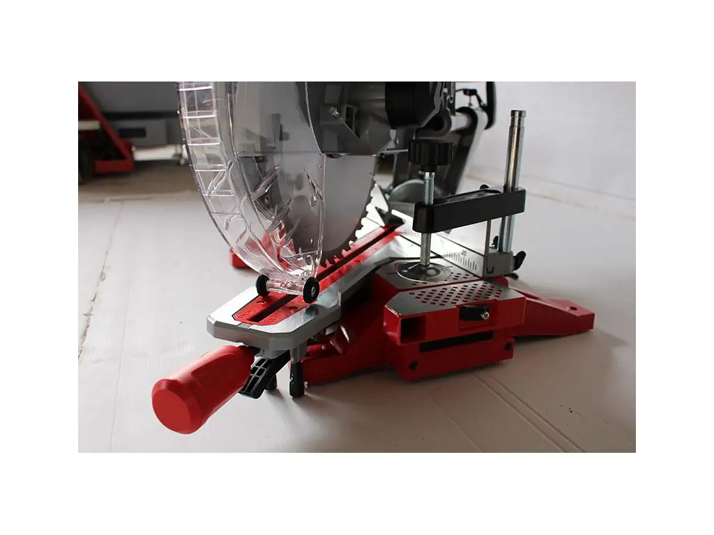 Нахил пильного вузла від -45° до +45° і поворот столу до 45° в обидві сторони дозволяють виконувати косі та фасочні пропили в різних площинах. Система протяжки значно збільшує робочу ширину пропилу та дозволяє обробляти великі заготовки без додаткових маніпуляцій. Для контролю глибини пропилу є обмежувач глибини, а для точного позиціонування лінії різу ця торцювальна пила з протяжкою оснащена лазерним покажчиком.