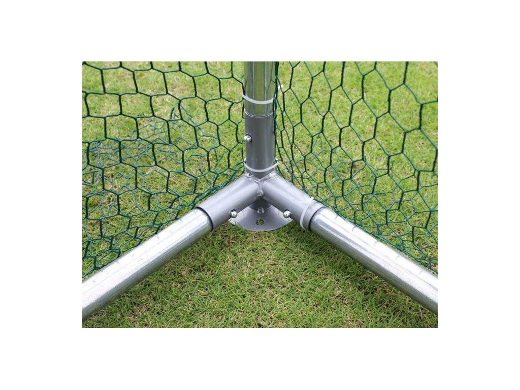 Каркас вольєра виготовлений з оцинкованої сталевої труби ø25x0,65 мм і має високу стійкість до скручування та корозії. Огорожа - зі стійкої до розриву, оцинкованої сталевої сітки з ПВХ покриттям і розміром вічок 45x25 мм. Частина даху сітчаста, а інша частина - з водонепроникного, стійкого до ультрафіолетових променів матеріалу, тому птахи будуть надійно захищені від крилатих хижаків, опадів і палючого сонця. Цей зручний і надійний вольєр може використовуватися як портативний курник у домашніх господарствах і на птахофермах.