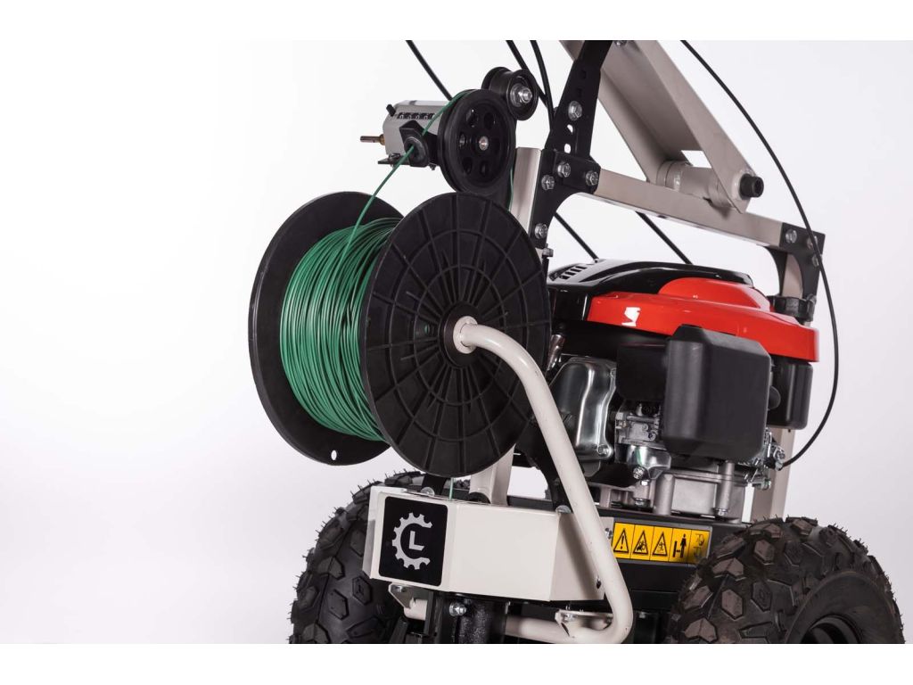 Міцна конструкція машини з сільськогосподарськими колесами також підходить для більш важких робіт. Кермо, що регулюється по висоті та нахилу, забезпечує роботу без втоми, а знімна бічна панель забезпечує легке складання кабельного барабана.