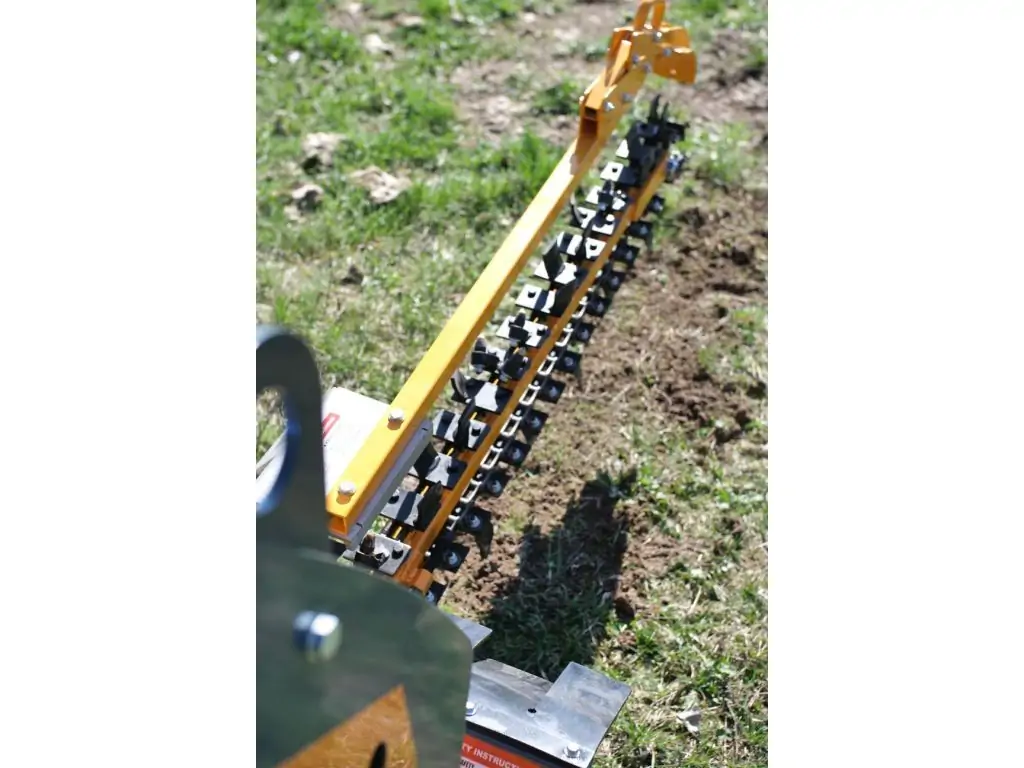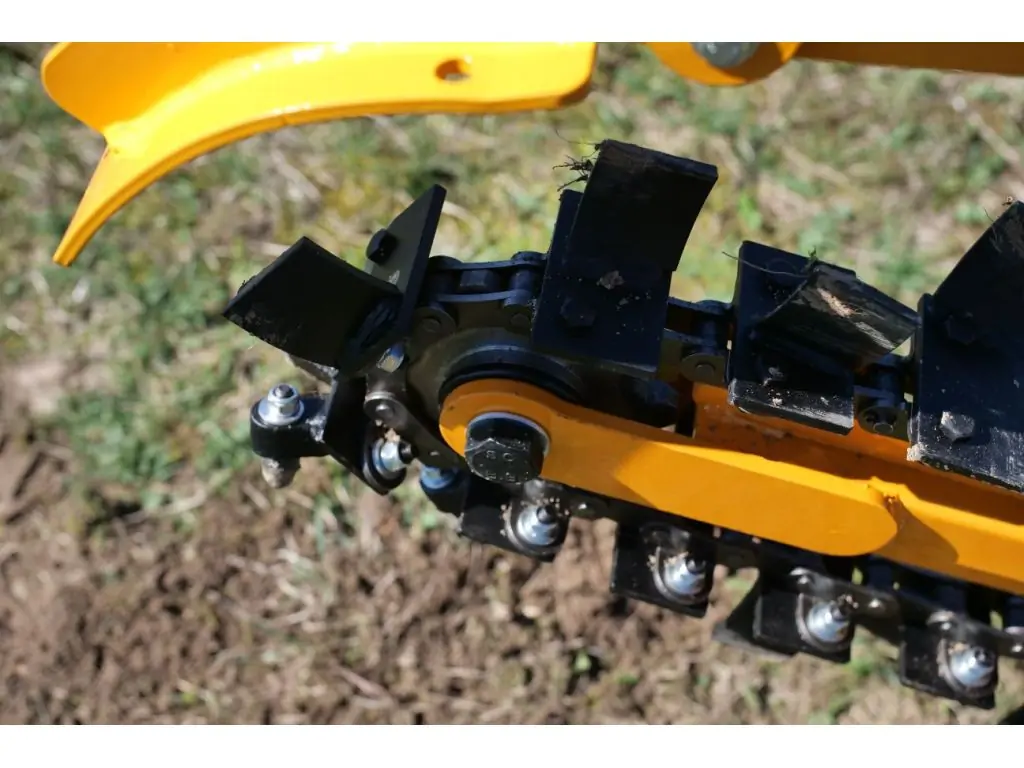 Траншеєкопач MAST Bautechnik MT-TR-100PRO - це просте в управлінні та ефективне в роботі обладнання для копання траншей під різні призначення. Ширина траншеї становить 10 см, глибина копання плавно регулюється у діапазоні 0-100 см. Завдяки ланцюгу з 25 твердосплавними лезами і 19 зубами ефективно впорається з усіма типами грунтів і завданнями різної складності. Швидкість обертання ланцюга можна регулювати від 0 до 550 об/хв. Продуктивність копання - 75–150 м/год, в залежності від глибини, вологості та породи грунту. Чотиритактний бензиновий двигун RATO R500-V потужністю 12,5 кВт забезпечує витривалість траншеєкопача і його стабільну роботу навіть при високому навантаженні.