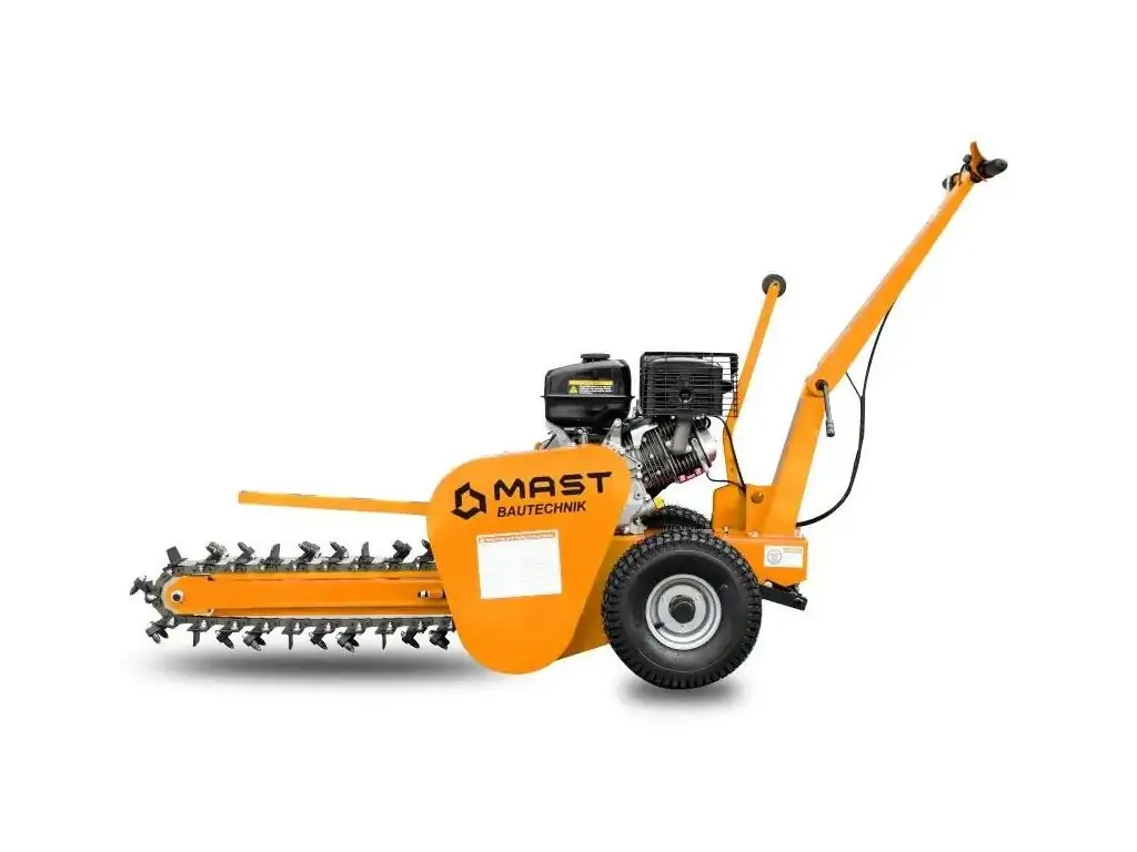 Траншеєкопач MAST Bautechnik MGF-1500 призначений для копання траншей під прокладання електрокабелів, водопровідних труб, дренажних систем та інших призначень. Витривалий бензиновий двигун Rato R420 потужністю 8,8 кВт забезпечує продуктивну роботу в умовах інтенсивних навантажень, а ланцюг з 27 твердосплавними зубами дозволяє ефективно справлятися з усіма видами грунтів, не боячись потрапляння каміння.