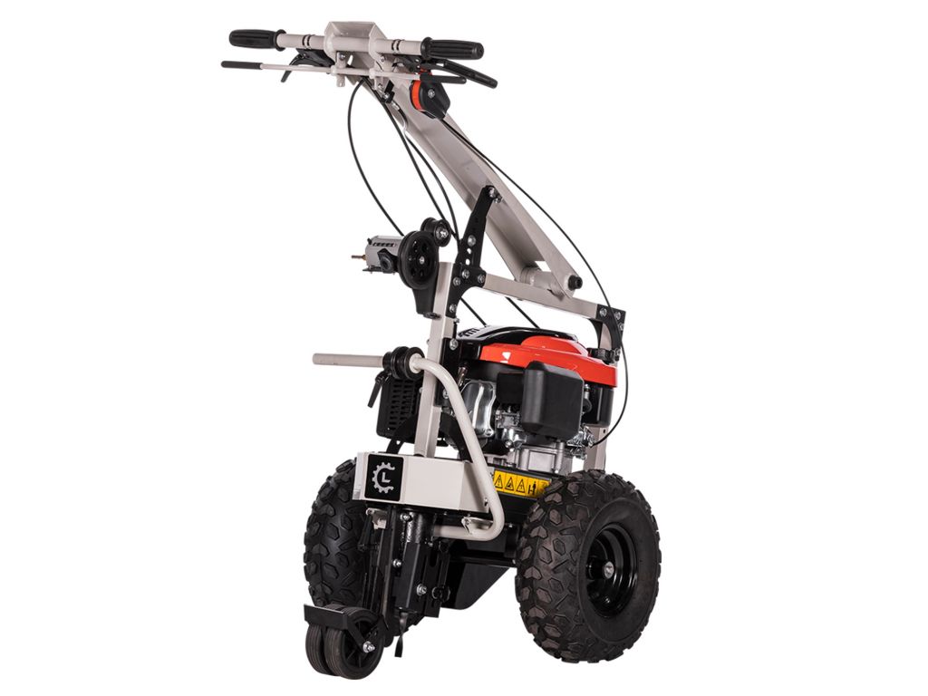 Міцна конструкція машини з сільськогосподарськими колесами також підходить для більш важких робіт. Кермо, що регулюється по висоті та нахилу, забезпечує роботу без втоми, а знімна бічна панель забезпечує легке складання кабельного барабана.