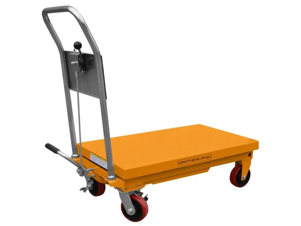 Рама візка виготовлена з високоякісної, міцної сталі, зварні шви, виконані зварювальними роботами, мають відмінну якість. Потужна гідравлічна система забезпечує плавний підйом і опускання платформи у діапазоні 340-900 мм. Щільне закриття насоса захищає від забруднень і витоку масла. Візок оснащений захисними пристроями, які запобігають випадковому падінню вантажу. Зручна ручка і коліщата дозволяють легко і швидко транспортувати вантаж по робочій зоні. Цей та інші підйомні столи для СТО доступні для замовлення в інтернет-магазині KMA.UA.