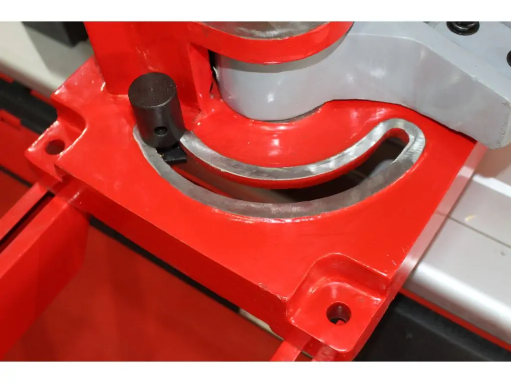 Згинання виконується за допомогою руху довгого важеля з антиковзаючим покриттям. Лита металева конструкція з антикорозійним покриттям витримує інтенсивні навантаження і має високу стійкість до вібрацій, що забезпечує стабільність робочого процесу. Отвори в станині дозволяють швидко закріпити верстат на верстаку чи іншій робочій поверхні. За рахунок невеликого розміру і ваги обладнання зручне у транспортуванні і може може компактно зберігатися, коли немає потреби у використанні. Якісні матеріали виготовлення роблять цей ручний згинальний верстат надзвичайно надійним у роботі і забезпечують довготривалу службу.