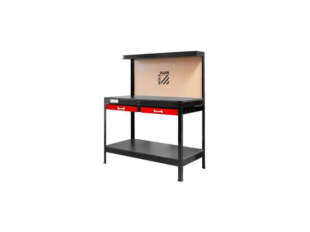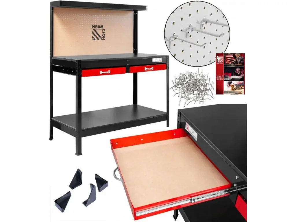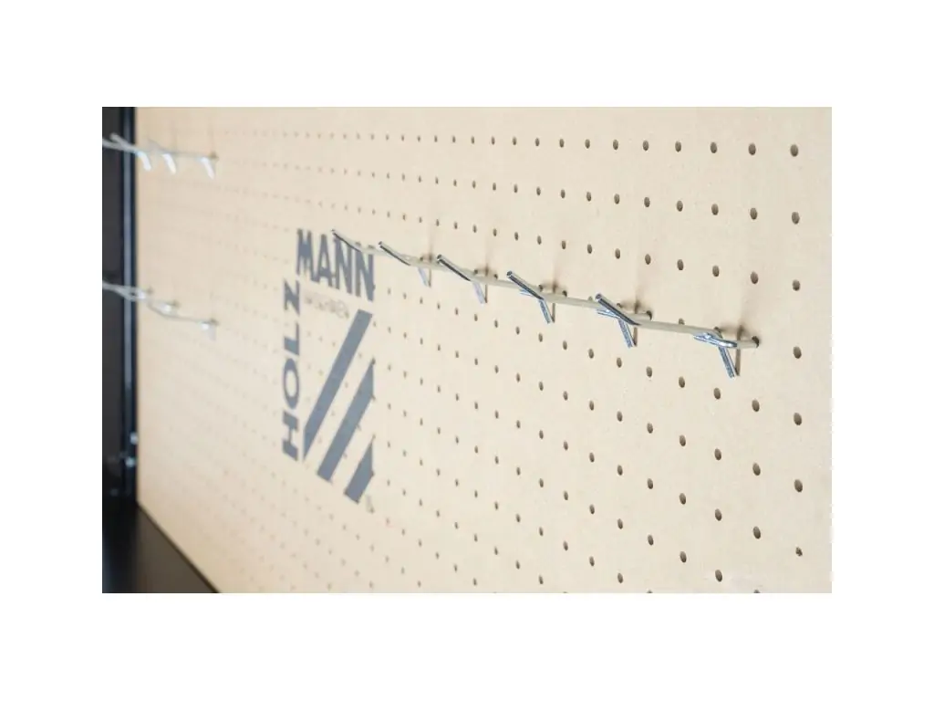 Верстак Holzmann WT06 з міцною, компактною конструкцією має широкий спектр застосування і може успішно використовуватися у різнопрофільних майстернях. Каркас виготовлений з високоякісної загартованої сталі, стільниця - з міцного МДФ, що забезпечує високу зносостійкість і тривалий термін служби. Перфорована стінка розміром 1130x545 мм і 20 гачків у комплекті поставки дозволяють зручно розмістити у зоні доступу дрібний інструмент.