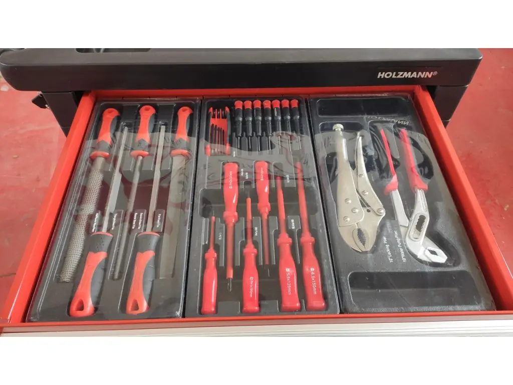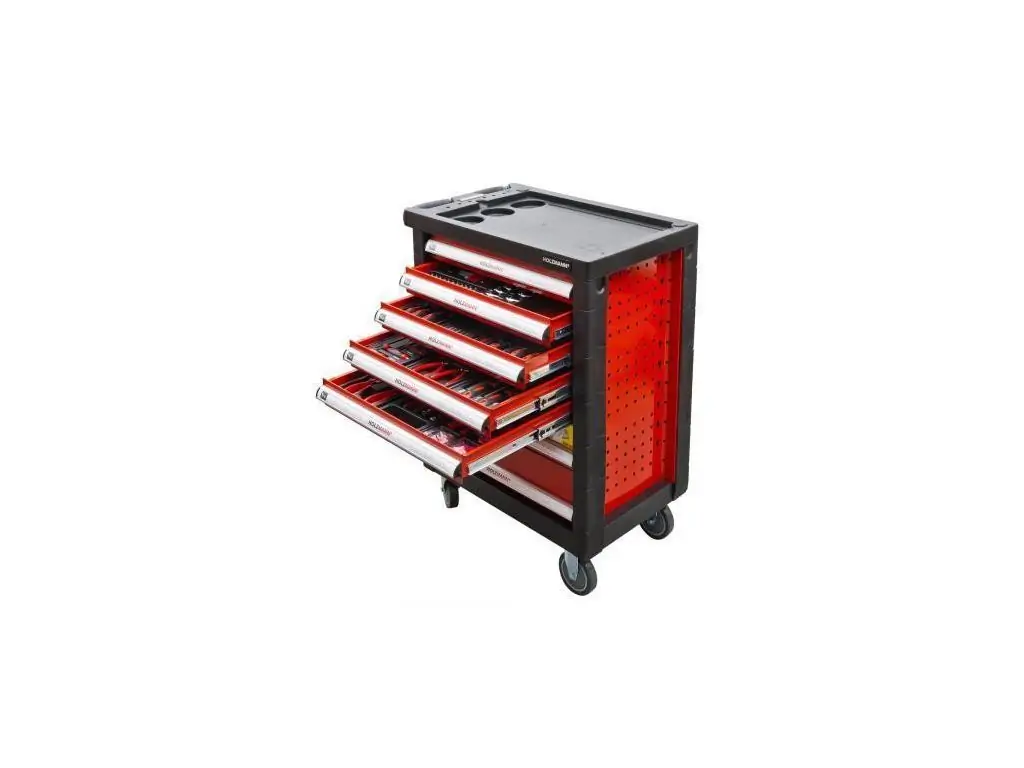 Інструменти виготовлені з хромованадієвої сталі, яка має високу міцність і стійкість до зносу. Всі предмети зручно розсортовані у 7 великих ящиках на шарикопідшипниках, розмір яких збільшується зверху донизу. Корпус візка має посилену конструкцію зі сталі з антикорозійним покриттям, що забезпечує його надійність і тривалий термін служби. Колеса і зручна ручка дозволяють легко транспортувати візок по майстерні, а за допомогою системи блокування можна встановити його у зручному місці. Візок інструментальний з інструментом Holzmann WW 790W в наявності в інтернет-магазині офіційного постачальника виробника в Україні KMA.UA.