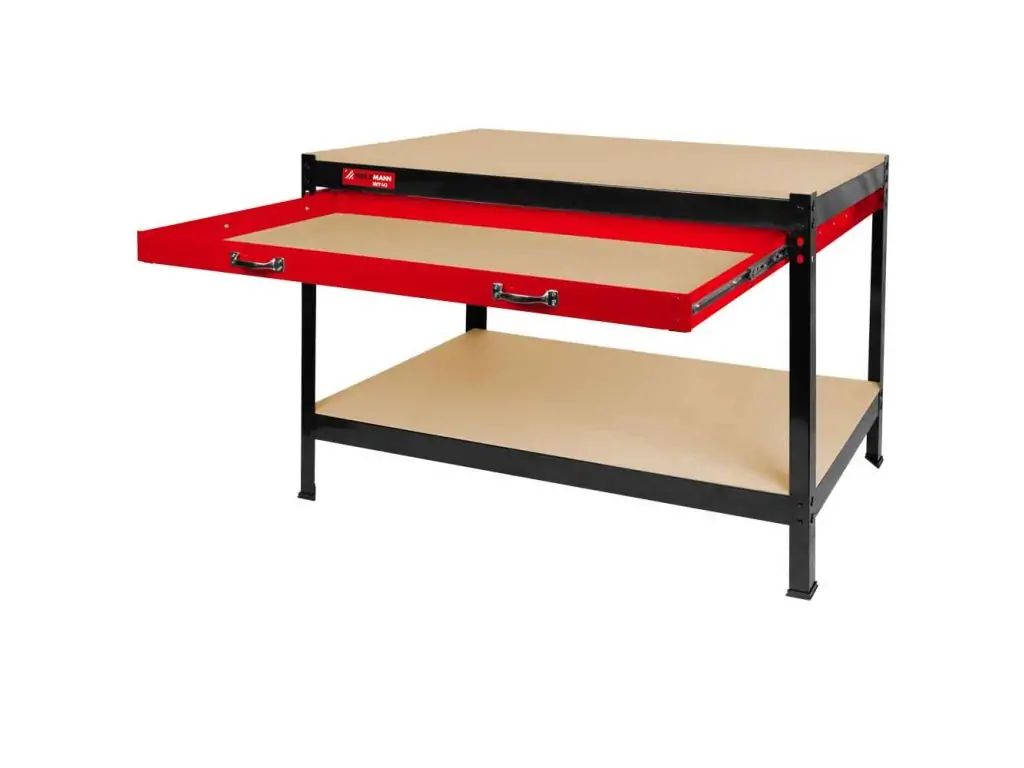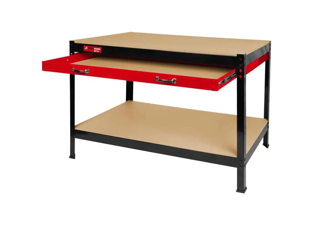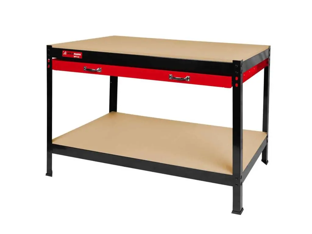 WT40 вражає практичною універсальністю та великим місцем для зберігання: дві плавні шухляди та велика полиця забезпечують простір для інструментів та аксесуарів. Робоча поверхня довжиною 1,2 метра забезпечує достатній робочий простір. Завдяки продуманій системі з'єднань збірка відбувається миттєво.