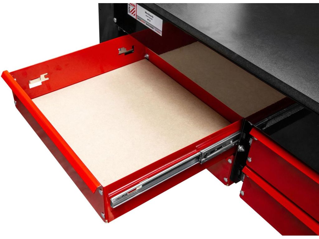 4 висувні ящики на кулькових підшипниках забезпечують зручне зберігання інструментів та аксесуарів, а перфорована стінка розміром 1055х560 мм і 20 гачків у комплекті дають змогу закріпити дрібний інструмент і завжди мати все необхідне під рукою. Надзвичайно міцна та зносостійка конструкція на стійких ніжках довговічна та надійна у роботі. Цей невеликий верстак купити можна зі доставкою по Україні.