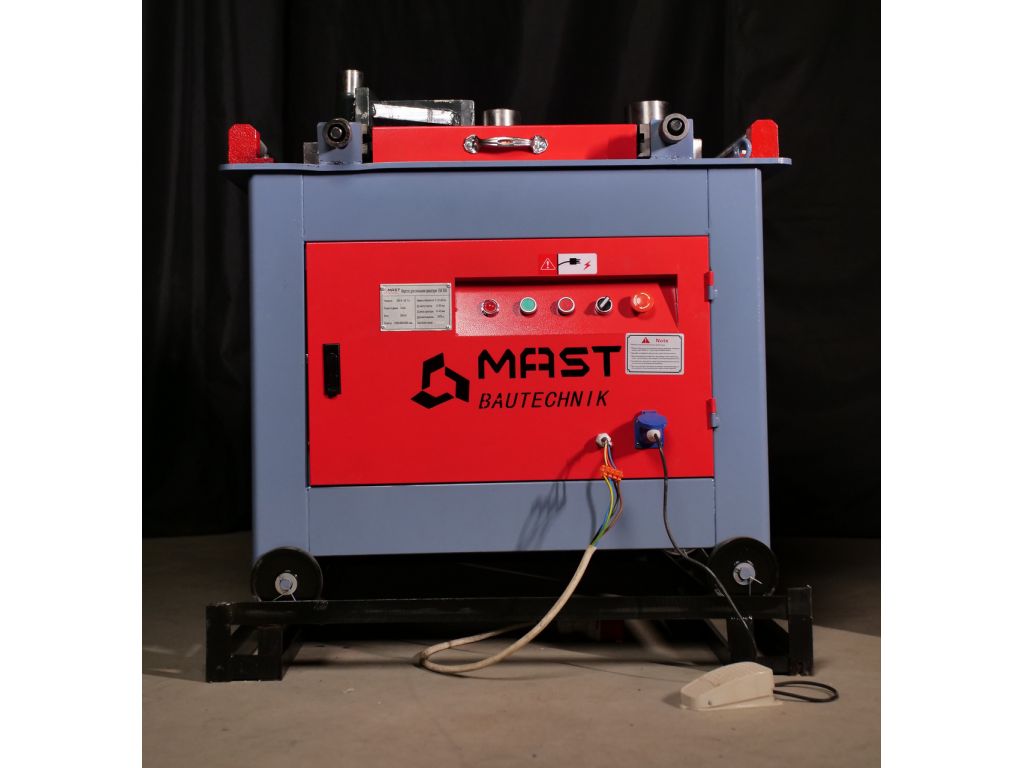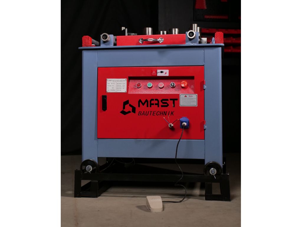 Верстат для згинання арматури MAST Bautechnik GW50A використовується для згинання арматури діаметром 6–42 мм і сталевих прутків (класи А1, А3, А500С) діаметром 6–50 мм. Перевагою моделі є два режими керування: ручний (кнопковий) та автоматичний (педальний). В автоматичному режимі після одноразового натискання педалі диск обертається на заданий кут і автоматично повертається у вихідне положення, що дає змогу виконувати серійне згинання з високою точністю.