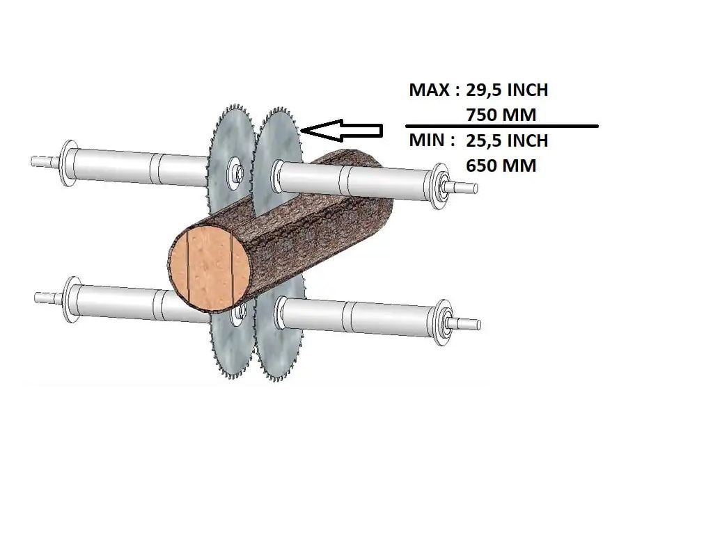 Верстат оснащений 4 двигунами потужністю 30 кВт (для 8 пил опційно - 4х75 кВт). Ланцюгова конвеєрна стрічка з обертальним механізмом забезпечує плавний і рівномірний рух колоди. Швидкість розпилювання - 20 м/хв, продуктивність - 100-120 кубів за зміну. Точність розпилювання досягається за рахунок спеціальної конструкції транспортера подачі, напрямні якого мають форму призми, що сприяє надійному центруванню колоди. Завдяки потужній рамній конструкції і надзвичайно міцним, подовженим розклинюючим ножам, цей верстат для виробництва бруса ефективно справляється з усіма породами деревини.