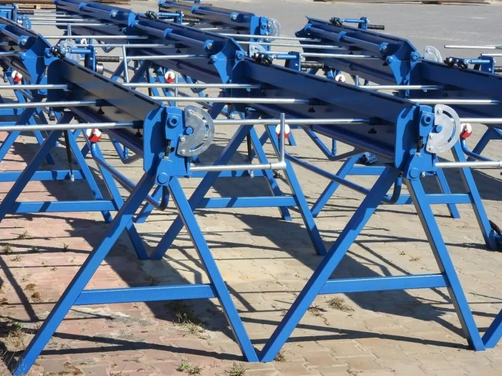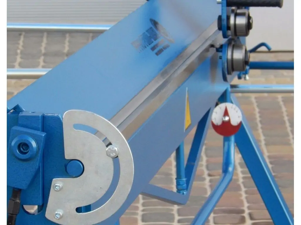 Згинальна і притискна балки виготовлені з високоякісного металу і мають високу стійкість до деформацій. Для точного виставлення кута згину верстат оснащений градусною шкалою. Для точного згинання заготовки під потрібним кутом є вбудований кутомір. У задній частині верстата є упори для підтримки листів. Глибина подачі заготовок необмежена. Опційно доступні до замовлення роликовий ніж і доварювальник, завдяки яким цей згинальний верстат для листового металу стане ще більш функціональним.