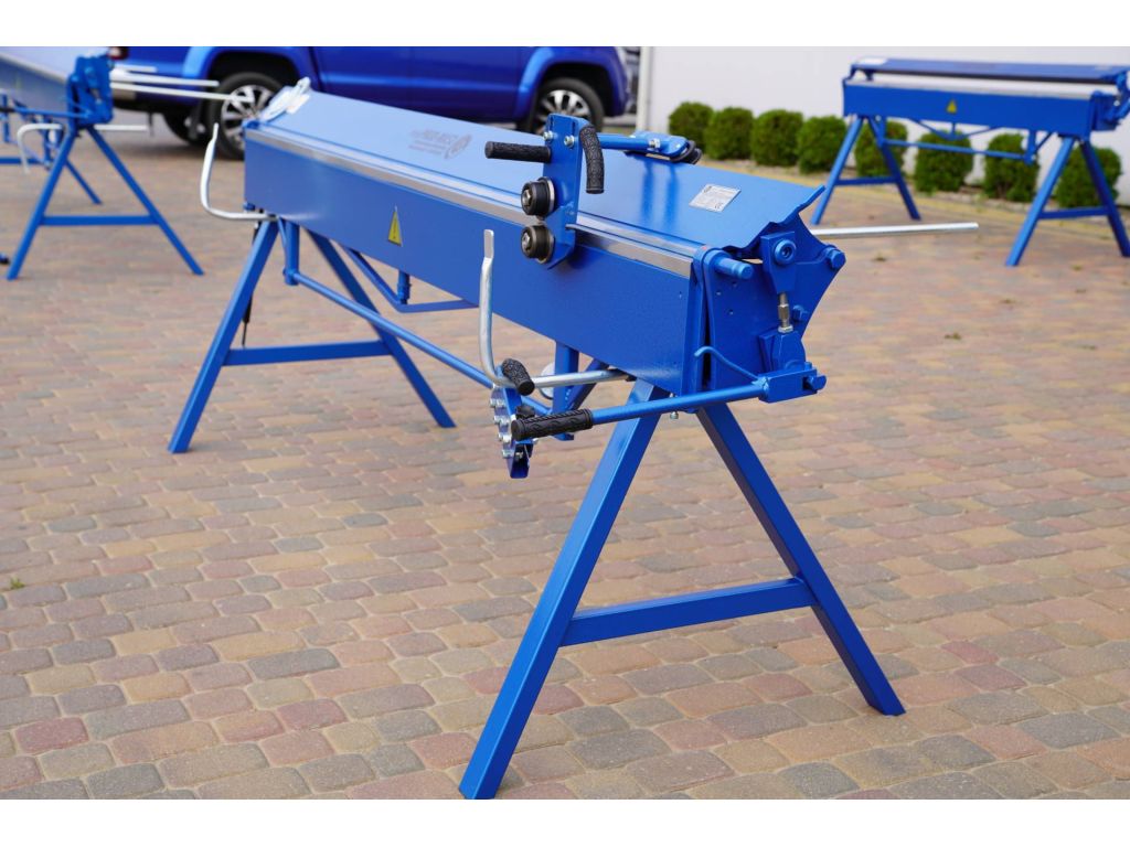 Для точного виставлення кута згину верстат оснащений градусною шкалою, а для точного згинання заготовки під заданим кутом є вбудований кутомір. Глибина подачі листа необмежена. Для підтримки листів у задній частині верстата є упори. Цей листозгин 1,2 мм опційно може укомплектовуватися роликовим ножем і доварювальником.