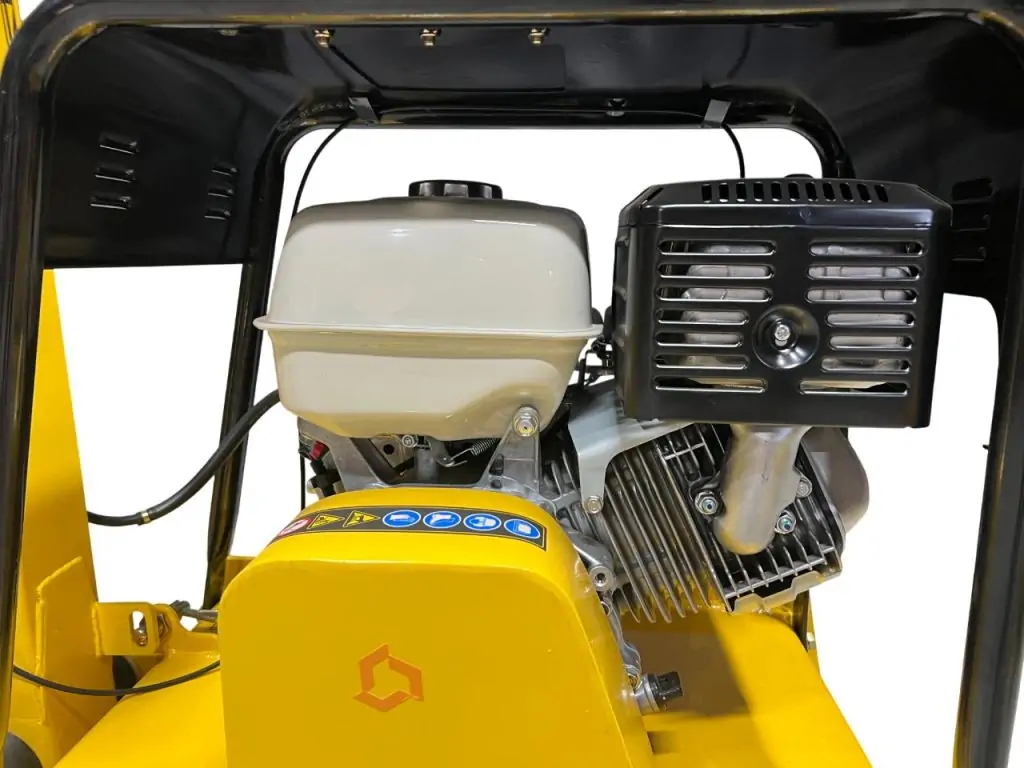 Робоча плита розміром 80х68 см забезпечує рівномірний контакт з поверхнею і швидке ущільнення великих площ. Підошва виготовлена зі зносостійкої сталі і має заокруглені кути, що дозволяє якісно ущільнювати ділянки біля перешкод та зменшує утворення борозен. Завдяки наявності реверсу ця віброплита для професійних робіт зручна в маневруванні, що гарантує ефективну роботу в обмеженому просторі.