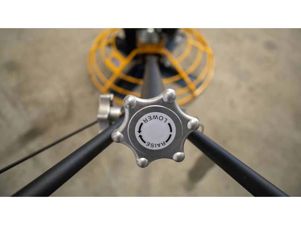 Корпус виготовлений з високоякісної сталі і характеризується високою міцністю і стійкістю до пошкоджень. Ергономічний дизайн і регульована по висоті ручка забезпечують зручність експлуатації. Для транспортування обладнання ручку можна скласти. Ця професійна бетонозатиральна машина комплектується також затиральним диском Ø 965 мм, що ще більше розширює її можливості.