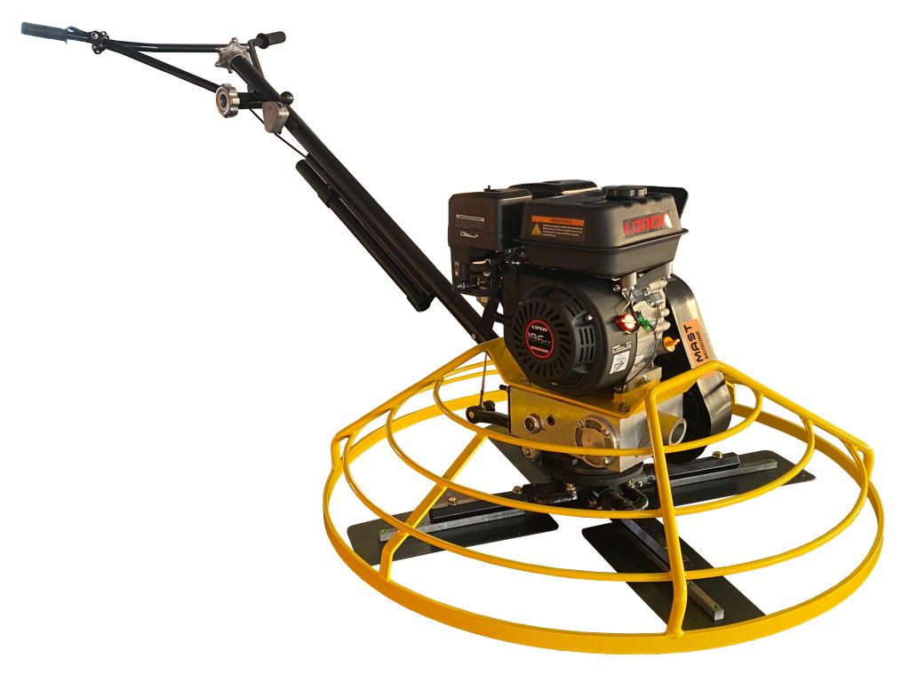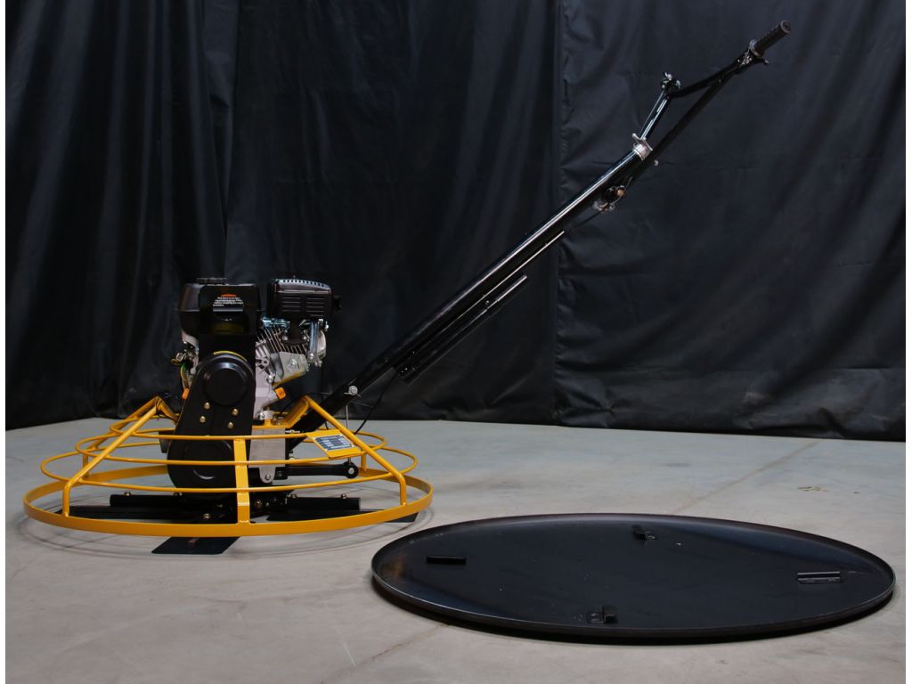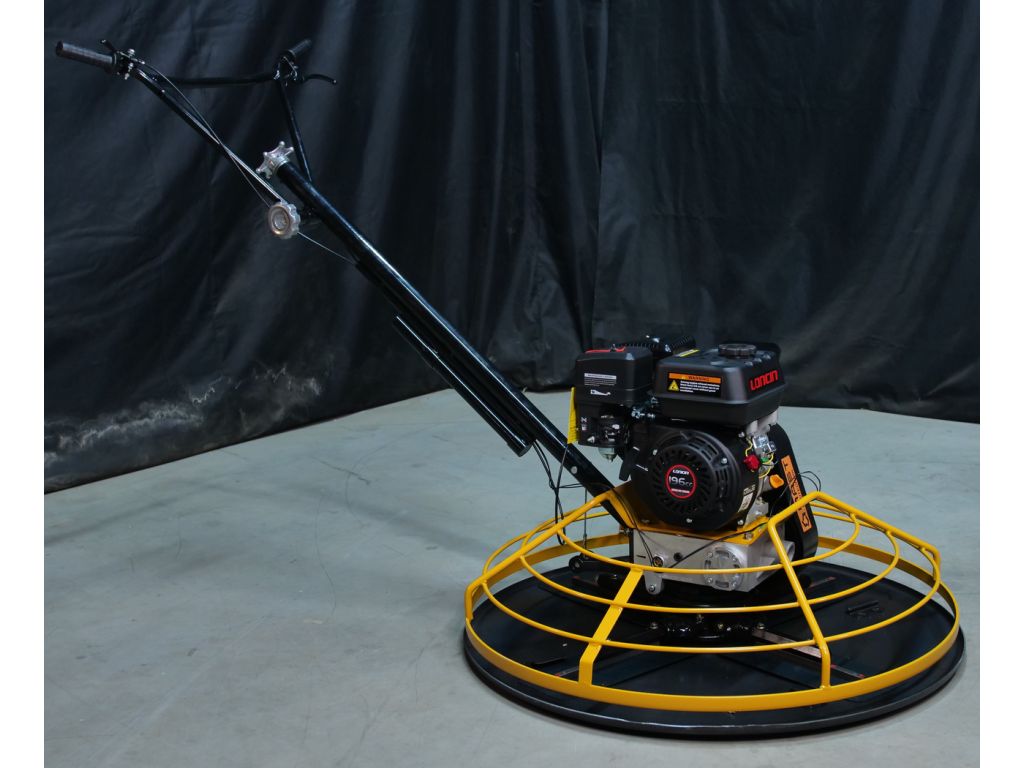 Витривалий бензиновий двигун LONCIN G200F потужністю 4,1 кВт і плавне регулювання швидкості обертання лопатей у діапазоні 60-140 об/хв забезпечують високу продуктивність обробки і швидке досягнення ідеального результату. Місткість паливного бака 3,6 л дозволяє тривалу роботу без зупинок для дозаправки. Завдяки ергономічній ручці, компактному дизайну і простому керуванню ця бетонозатиральна машина надзвичайно зручна в експлуатації. В комплект поставки входить сталевий диск для шліфування.