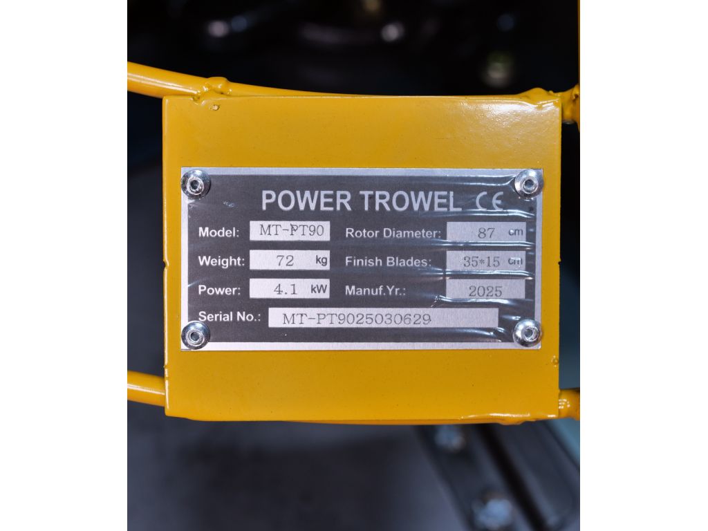 Затиральна машина по бетону MAST Bautechnik MT-PT90 - це ефективне обладнання для вирівнювання та згладжування бетонних поверхонь і стяжки, оснащене 4 лопатями розміром 350х150 мм. Діаметр затиральної області 900 мм дозволяє швидко обробляти великі площі, а нахил лопатей під кутом 0-15° - якісно опрацьовувати ділянки впритул до стін та згладжувати кути і краї. Запобіжне кільце запобігає вдарянню лопатей об стіни та інші перешкоди.