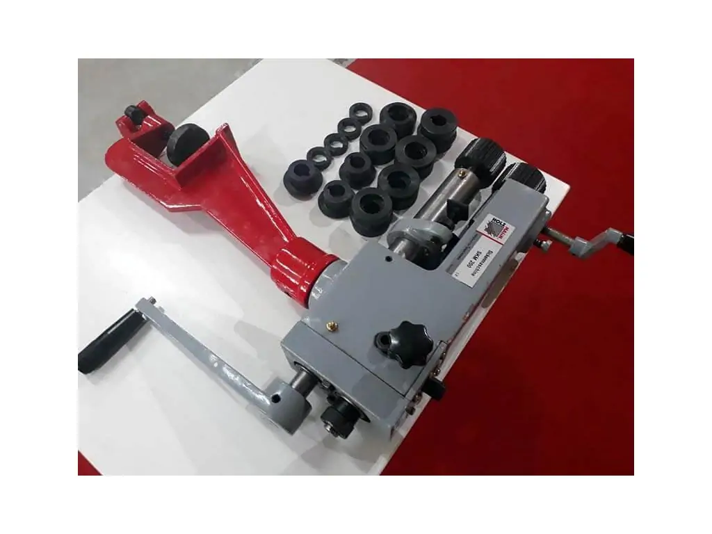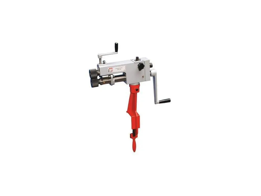 Верстат комплектується 6 наборами стандартних роликів для відбортовування і жолобчастого гнуття. Ролики приводяться в дію обертанням важеля. Поворотний корпус збільшує спектр можливих операцій. Для надійної фіксації на робочій поверхні є затискний пристрій. Компактна конструкція вагою 22 кг зручна у транспортуванні, що дозволяє використовувати цей ручний зигувальний верстат на різних об’єктах.