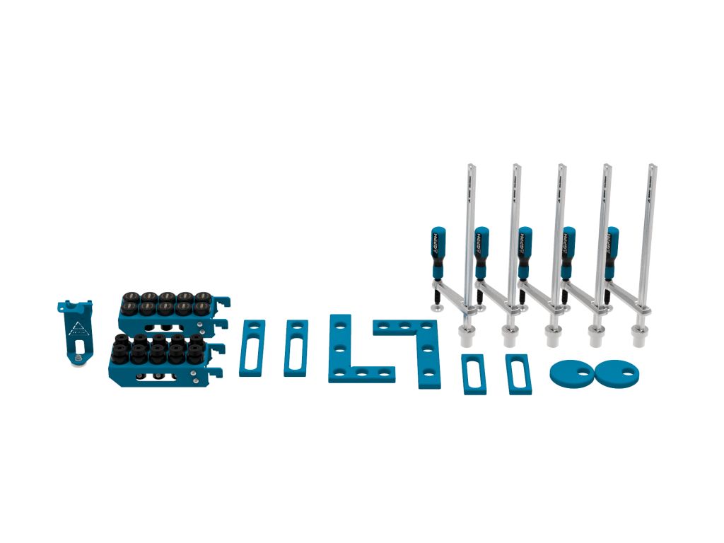 Найкомпактніший набір у лінійці – містить лише найважливіші інструменти, необхідні для базового кріплення та позиціювання. Він ідеально підходить для використання там, де простір та мобільність мають найвищі пріоритети, наприклад, у сервісних та складальних роботах або на робочих місцях з обмеженим простором. Незважаючи на невеликий розмір, він забезпечує надійну підтримку для легких зварювальних робіт.